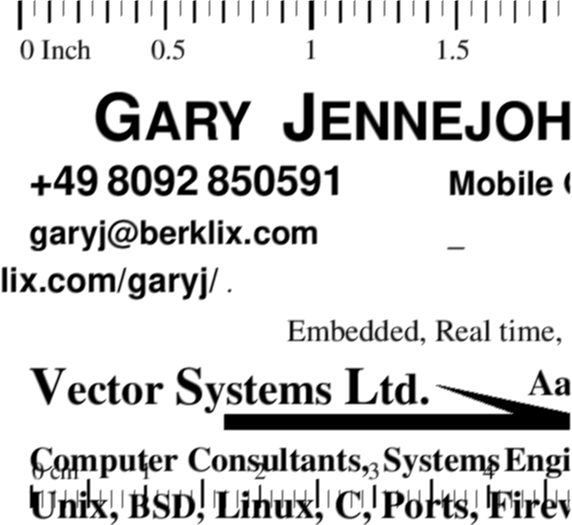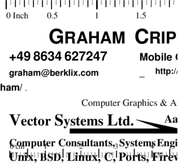 • Paper sizes: The card data knows & generates card the right size, but this has not yet been exported to all groff & ghostscript include libraries, so frames are too big.